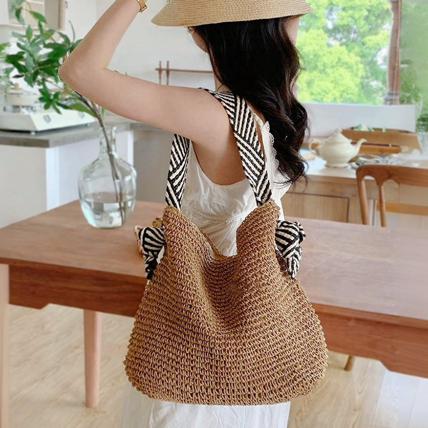 Artistic Stripes Knotted Strap Straw Bag